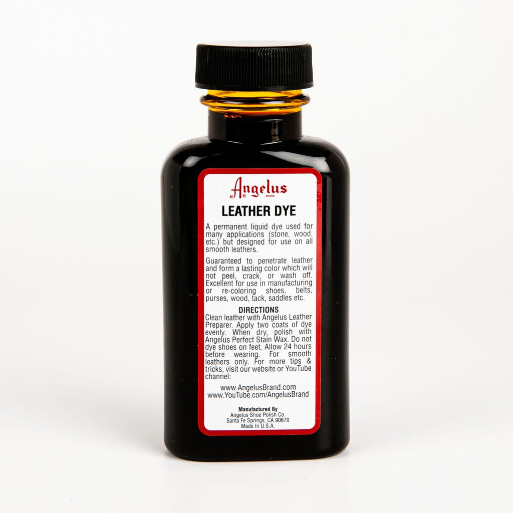 Before dyeing, remove any dirt or existing finish by using Angelus Leather Preparer and Deglazer. To clean, dilute, or mix leather dye colors, use Angelus Dye Reducer Solvent. After dyeing, use one of the many Angelus finishers.