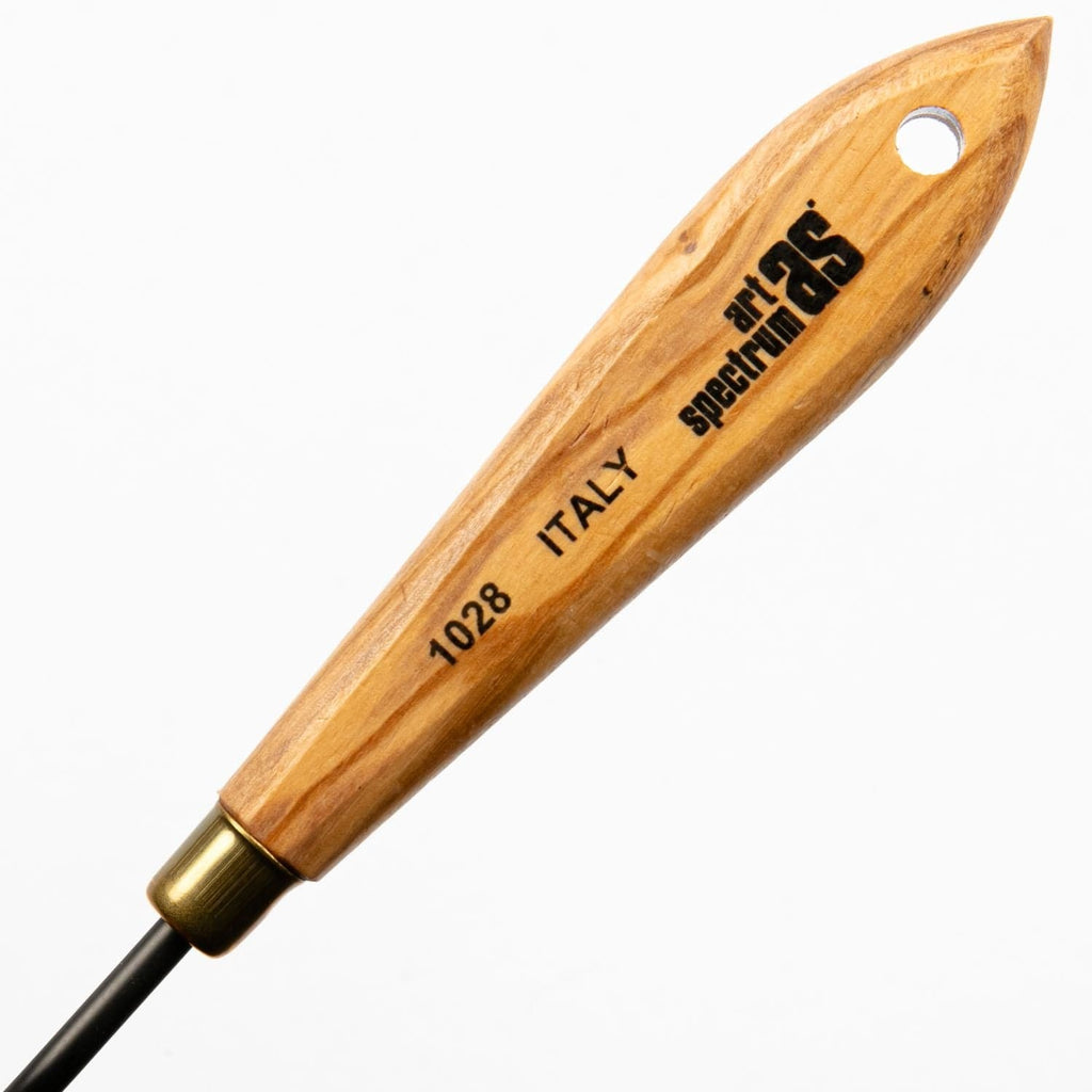 Art Spectrum® Painting and Palette Knives are a professional quality European made range with hand ground hardened steel blades in a black burnished finish. The handle is made of Olive wood and has a polished brass ferrule.