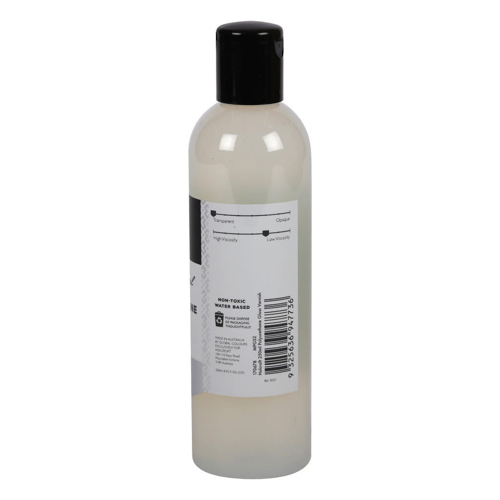 A durable water-based finishing varnish provides a clear high gloss non-yellowing quick dry finish. Formulated for indoor or outdoor use. Use varnish in full strength direct from bottle. Do not dilute. Do not use on canvas, paper or other flexible substrates. Allow at least 2-3 hours drying time between coats depending on humidity and climate. Water-resistant, heat-resistant and hard wearing. Shake varnish gently to ensure contents of bottle are well mixed. Apply thin layers in a criss cross motion, using a soft but firm brush. Not recommended for use over oil based products. Shake bottle gently before use. Wash brushes and applicators with soap and water. Non-toxic and water based.